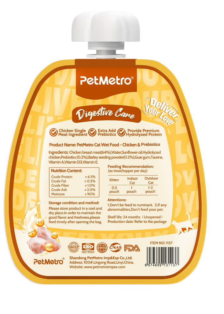 Specially formulated with real chicken for irresistible flavor and added prebiotics to promote healthy digestion, these treats are perfect for cats with sensitive stomachs or those who need extra digestive support.